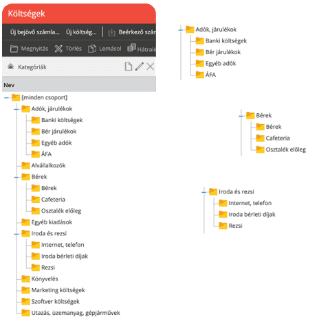 A költségeid kategorizálása segít a bejövő számlákat egyben, kategóriánként is elemezni.
